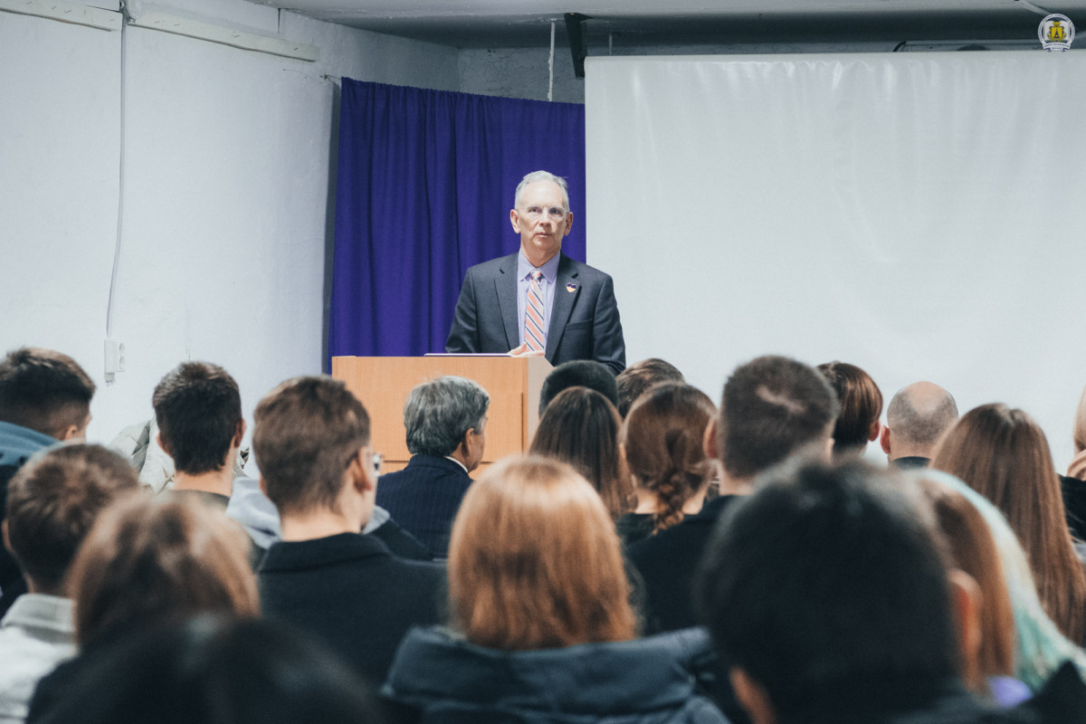 Особливий акцент зустріч мала на спілкуванні зі студентами та ветеранами, яке, в силу повітряної тривоги, вимушено проходило в університетському укритті. Участь у дискусії взяло багато здобувачів вищої освіти, демонструючи високий рівень зацікавленості у долі країни.