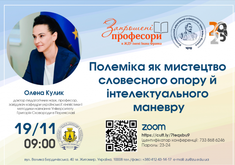 Професорка Олена Кулик долучилася до академічного діалогу про мистецтво полеміки в ЖДУ імені Івана Франка